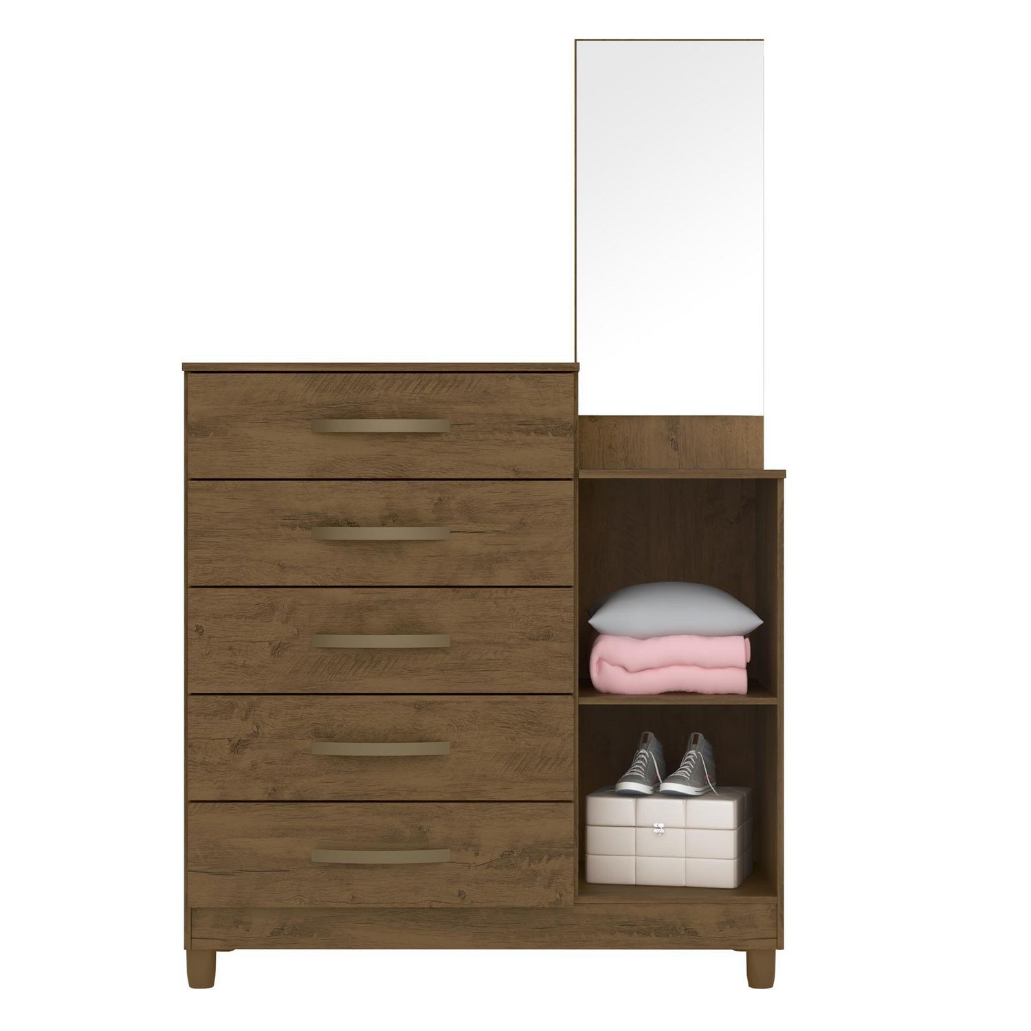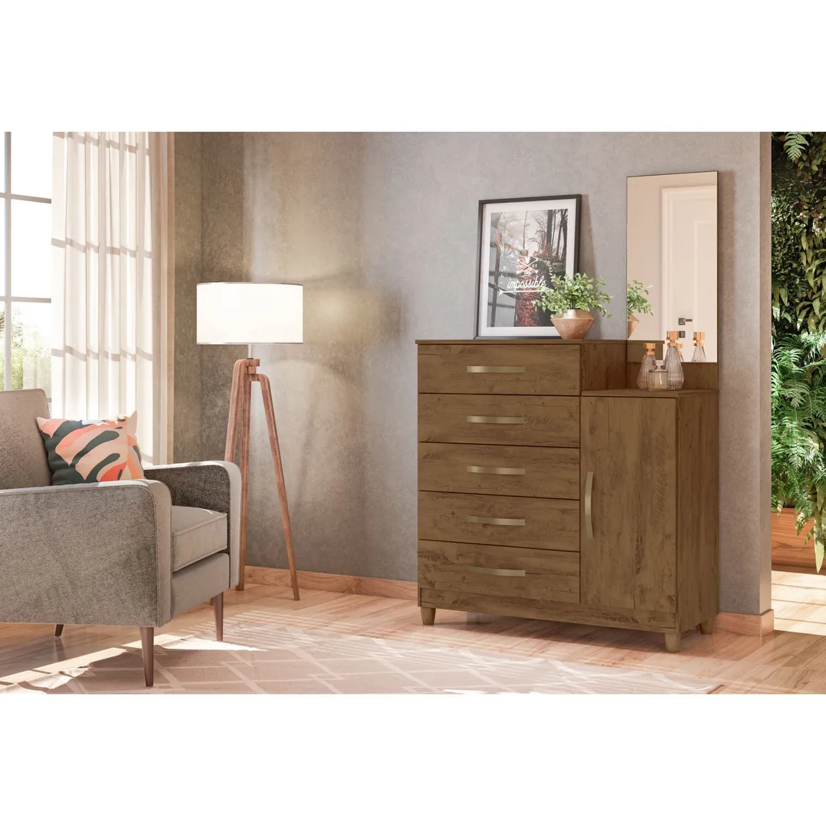 Cómoda 5 Cajones con Espejo Lisboa Castaño