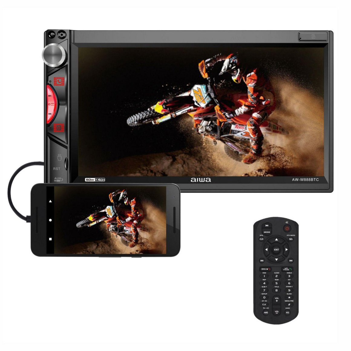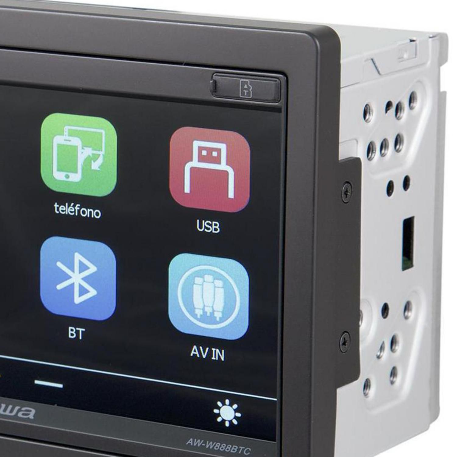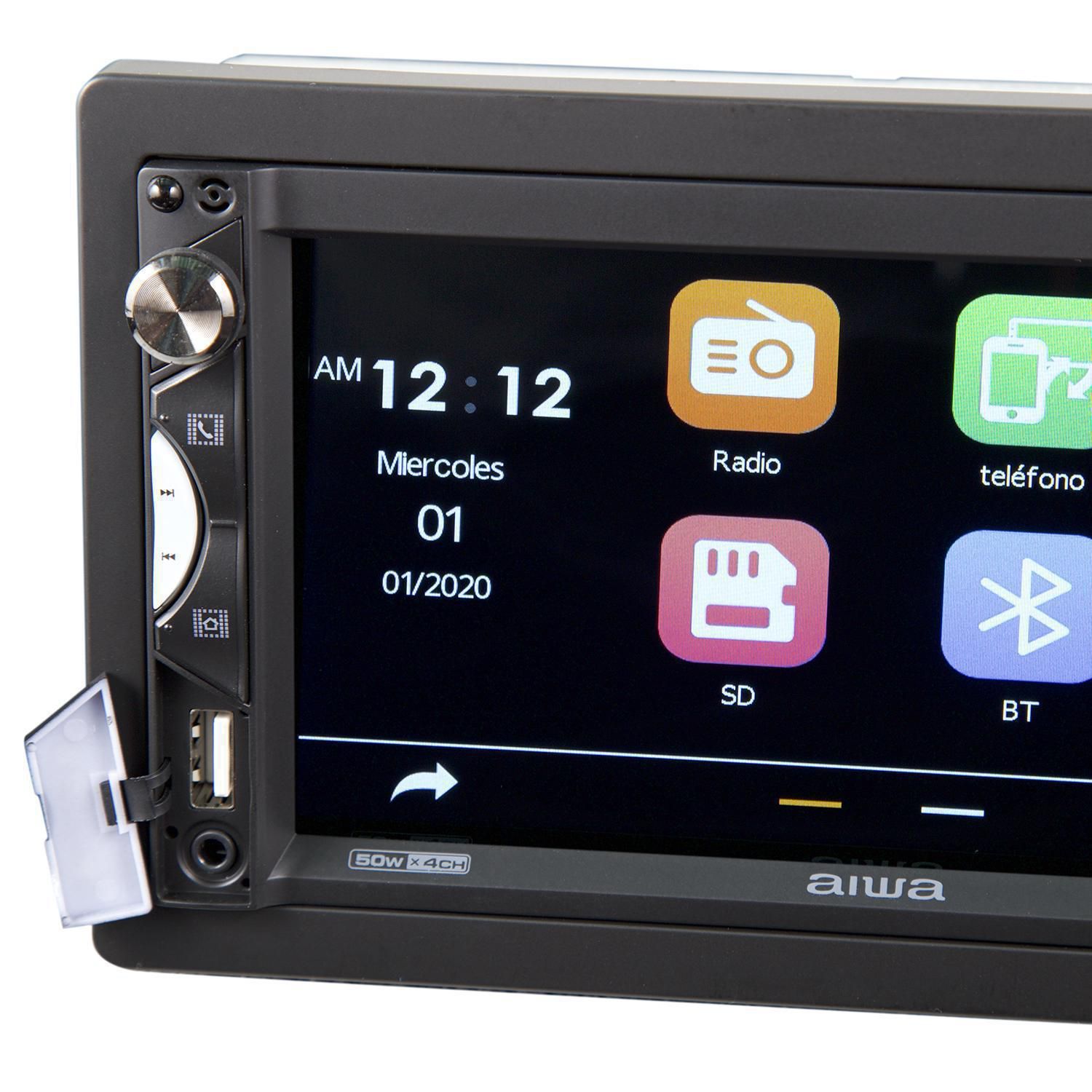 El Autoradio Aiwa cuenta con conectividad Bluetooth para emparejar tu teléfono y disfrutar de llamadas manos libres. Su pantalla táctil LCD de 6.9" te permite acceder fácilmente a tus aplicaciones, música y navegación. Además, reproduce videos MP4 hasta resolución 1080px y cuenta con puertos USB/SD. Incluye un control remoto para mayor comodidad.