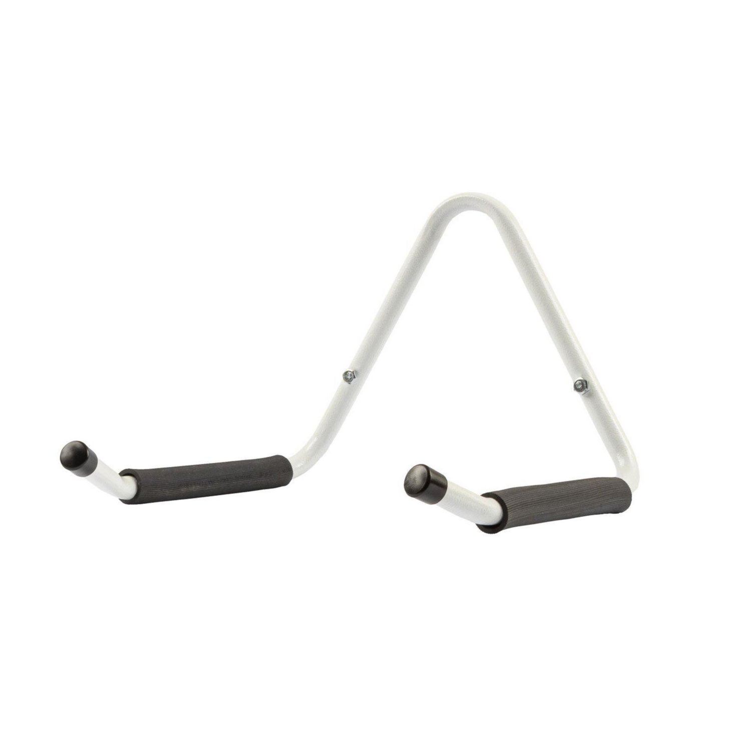 El Organizador de Bicicletas 25kg Blanco está hecho de metal y tiene un acabado blanco. Cuenta con un tubo de 5/8' con tornillos tirafon y tarugo especial para ser sujetado en paredes. Además, tiene una capa de pintura electrostática al horno de alta durabilidad, lo que lo hace resistente a la corrosión y al desgaste. Su diseño ejecutivo urbano le da un toque moderno a tu espacio. ¡Es ideal para colgar bicicletas y accesorios, escaleras, mangueras, sogas y herramientas!