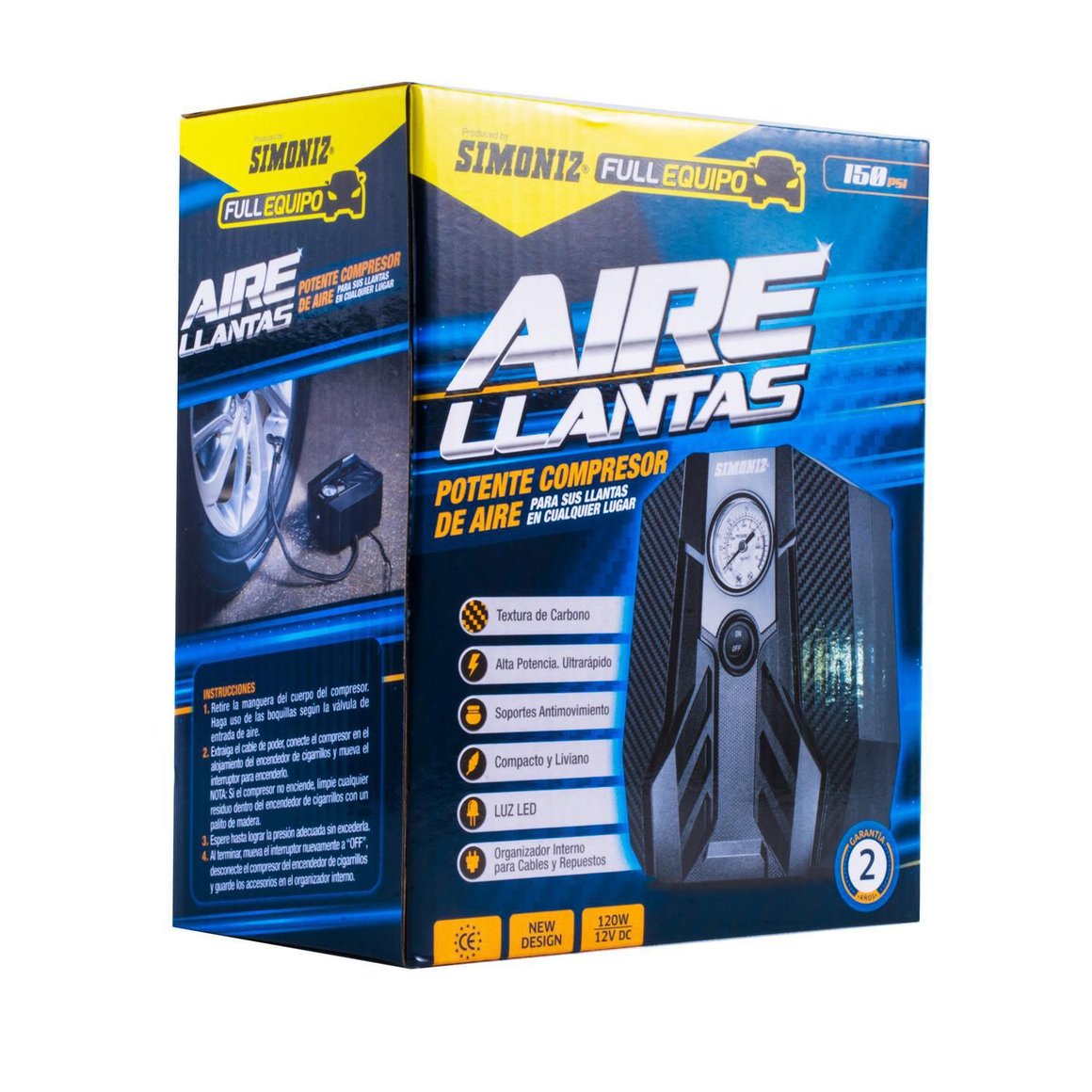 Dale a tus llantas el aire que necesitan con el compresor de aire Simoniz. Su diseño compacto y portable lo hace ideal para llevarlo a cualquier lugar. Con una potencia de 120W y una presión máxima de 4 Bar, inflar tus llantas será más fácil que nunca. Su color negro y textura de carbono le dan un toque moderno y elegante.
