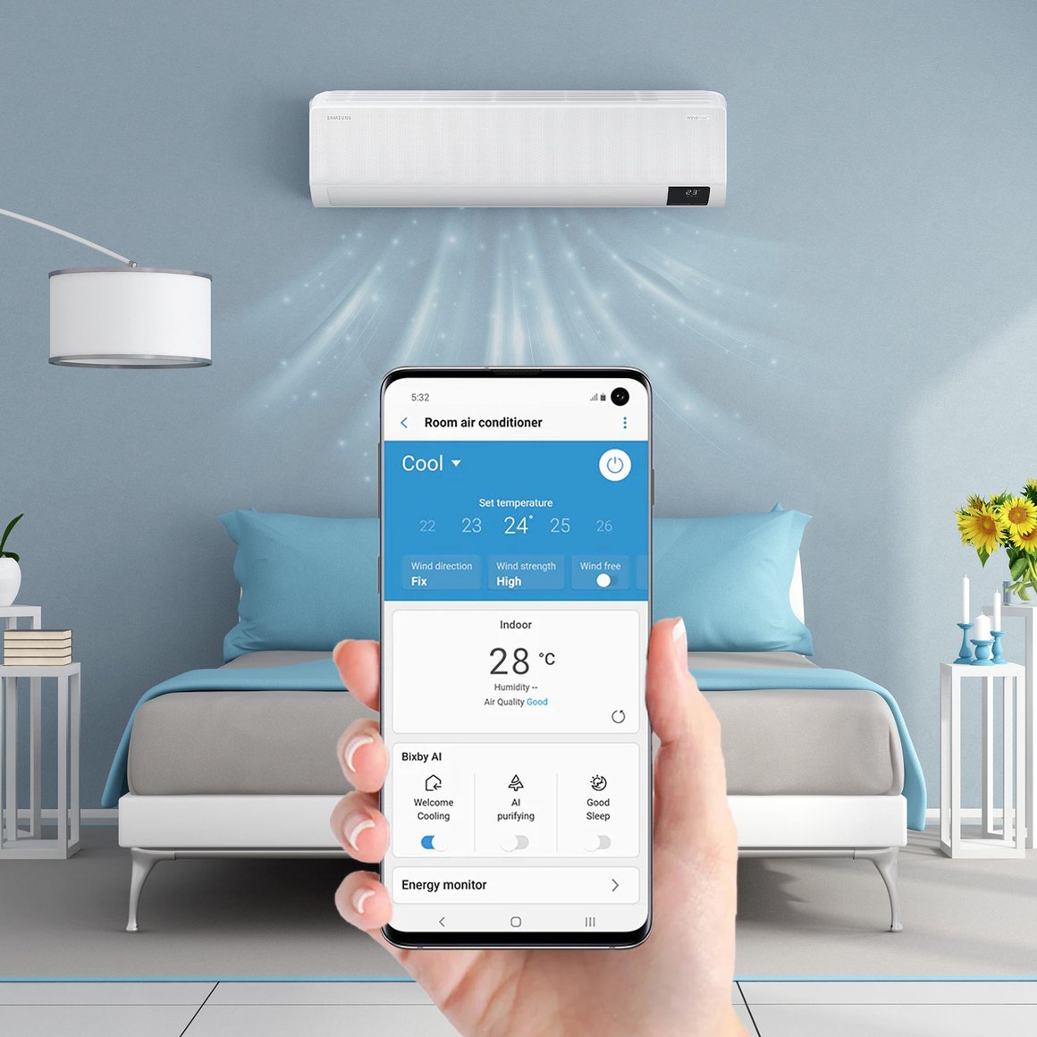 Complementa tu Aire Acondicionado Samsung Split 18000 BTU Inverter Windfree On/Off Smart Wi-Fi