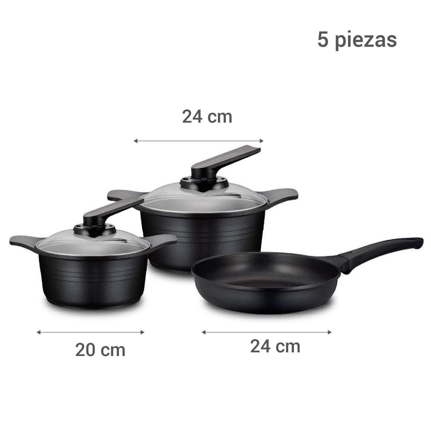 | Incluye | 1 cacerola de 24cm, 1 cacelora de 20cm y 1 sartén de 24cm |