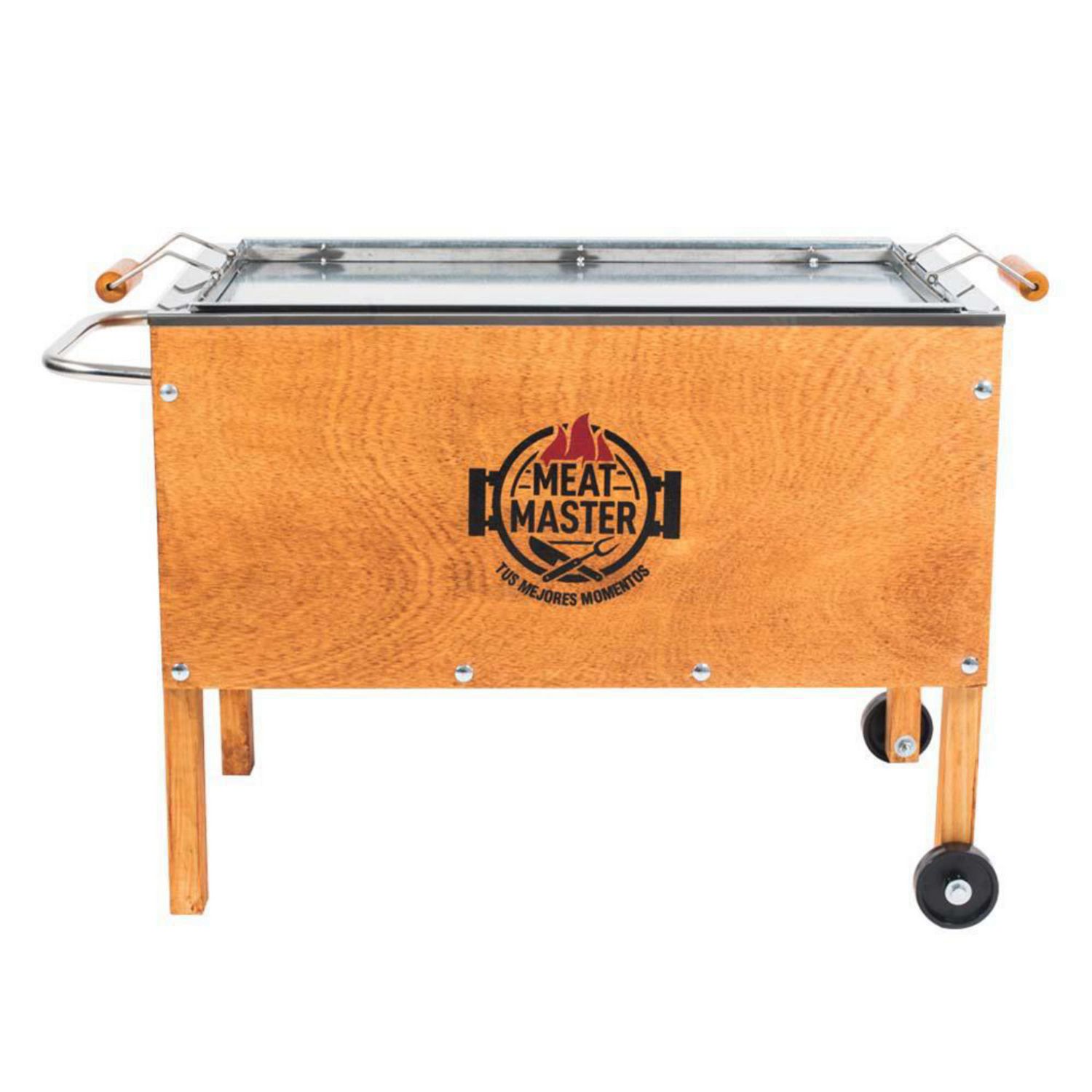 La Caja China Meat Master Mediana Premium no requiere armado y está hecha de madera, acero galvanizado y acero inoxidable. Su espacio de cocción es de 65 cm x 40 cm, y cuenta con una tapa y ruedas para facilitar su uso. El peso de la caja china es de 18 kg, y se alimenta con carbón. Para su limpieza, se recomienda esperar que se consuman las brasas y retirar la tapa carbonera. Evitar el uso de esponjas metálicas y guardar bajo techo.