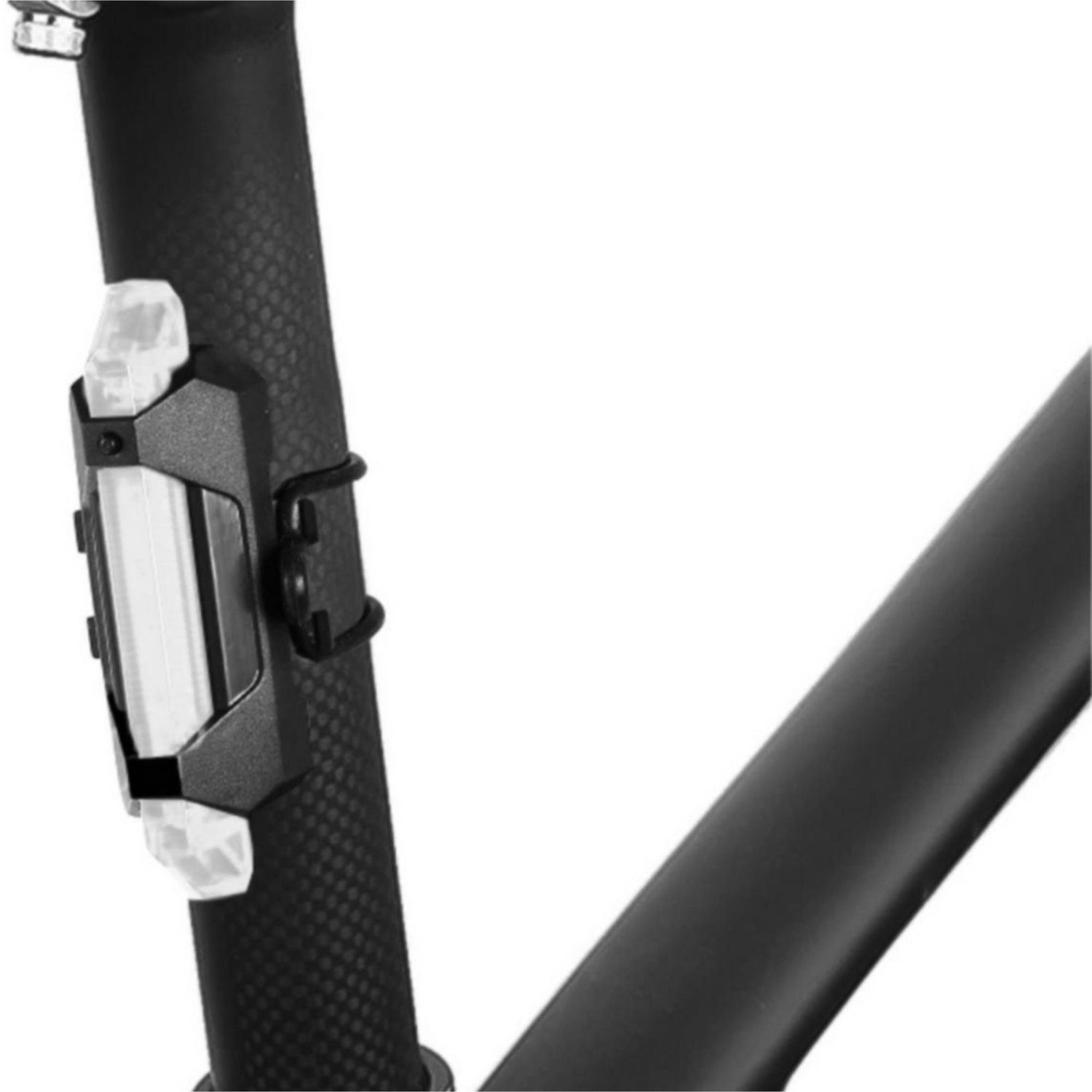Esta luz trasera está fabricada con material Abs y cuenta con múltiples modos de luces: largo brillo, guiño, parpadeo y rápido. Se coloca fácilmente en el poste del asiento de tu bicicleta y es compatible con tubos de 12-32 mm de diámetro. Ofrece un tiempo de funcionamiento de 4 horas y se carga en 2 horas.