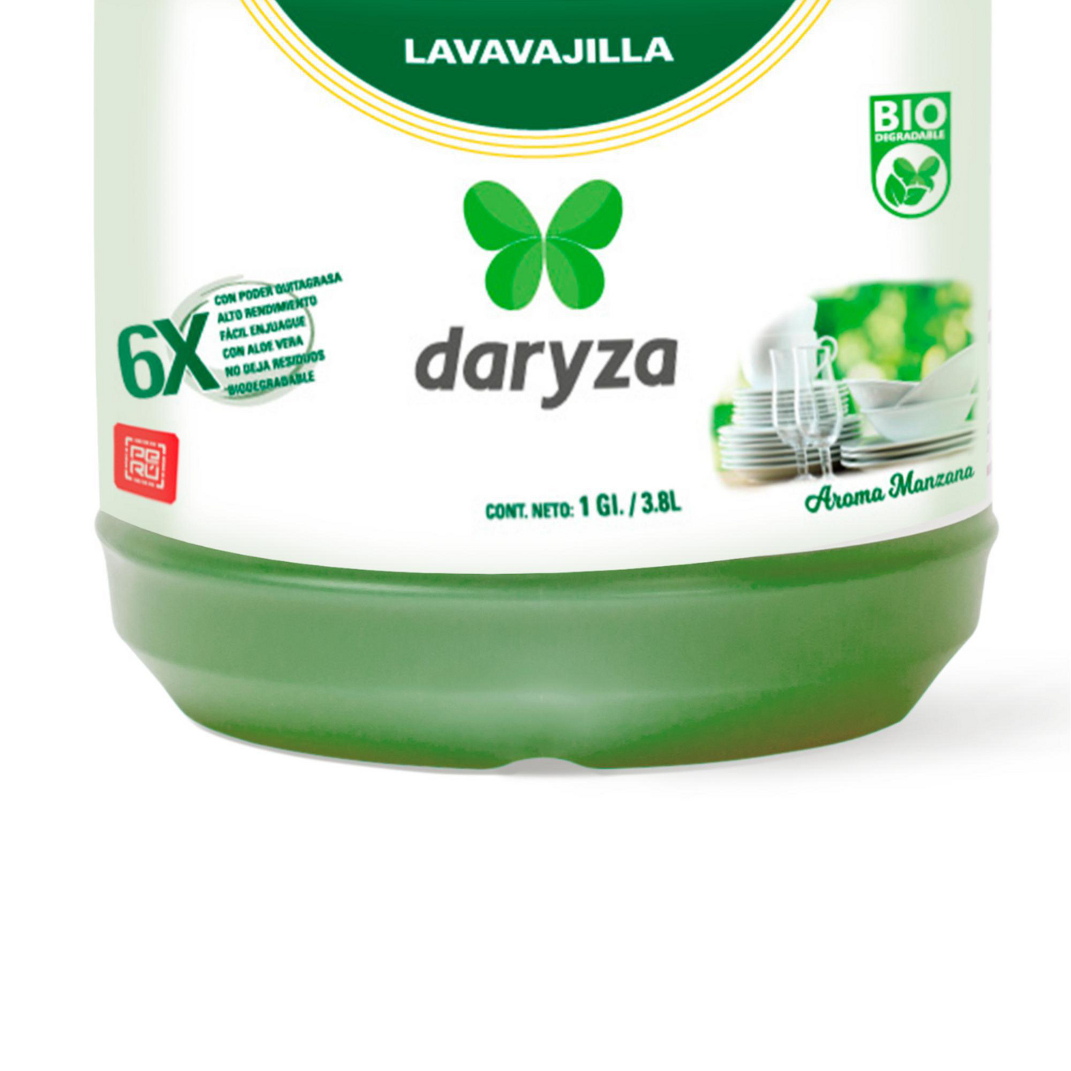 El Gel Lavavajilla Biodegradable de Daryza viene en presentación de 1 galón y es ideal para el uso diario. Su fórmula líquida, de color verde, te ayudará a eliminar la grasa y la suciedad de tu vajilla, dejando un aroma fresco a manzana. Además, es biodegradable, lo que significa que se descompone fácilmente en el medio ambiente, sin dejar residuos tóxicos.