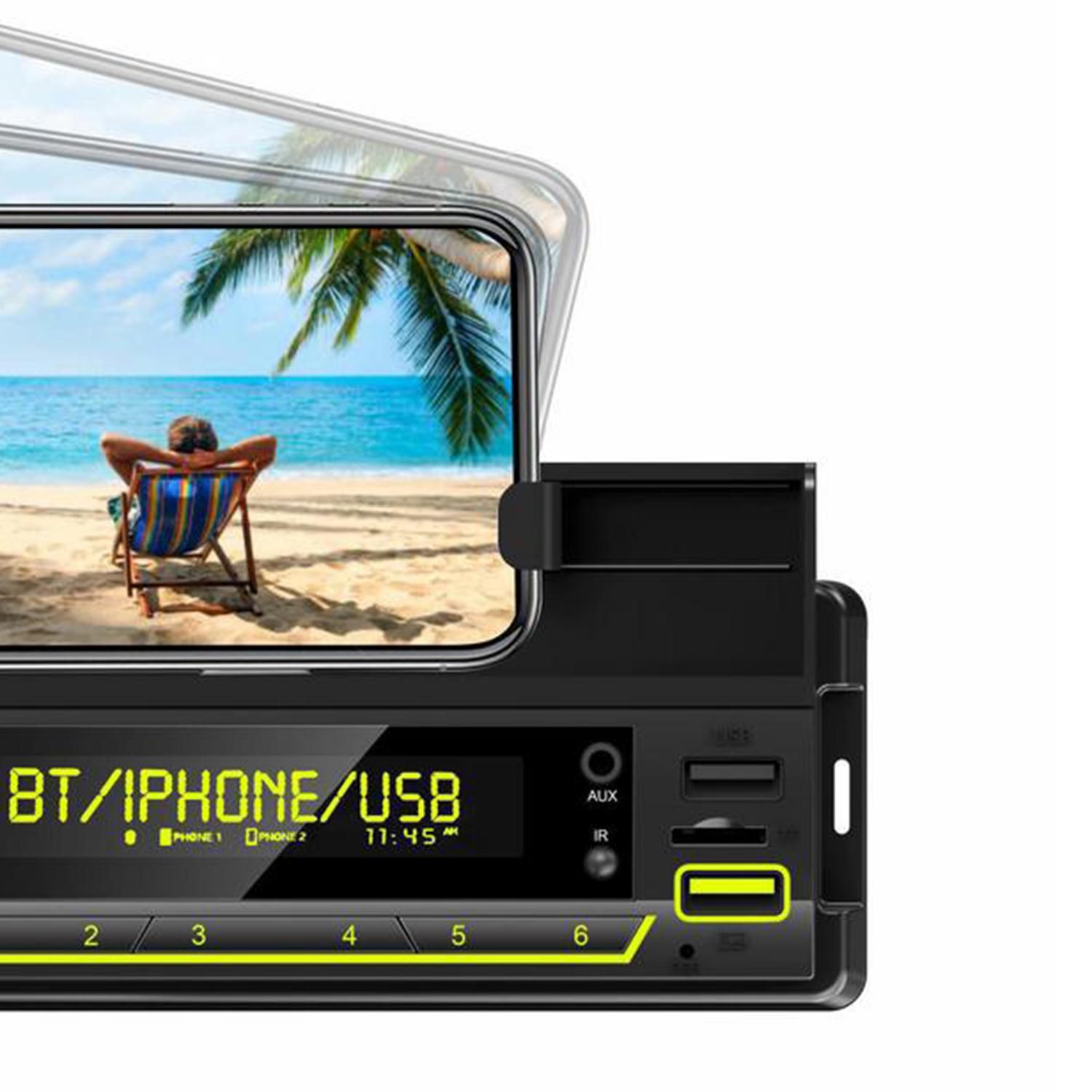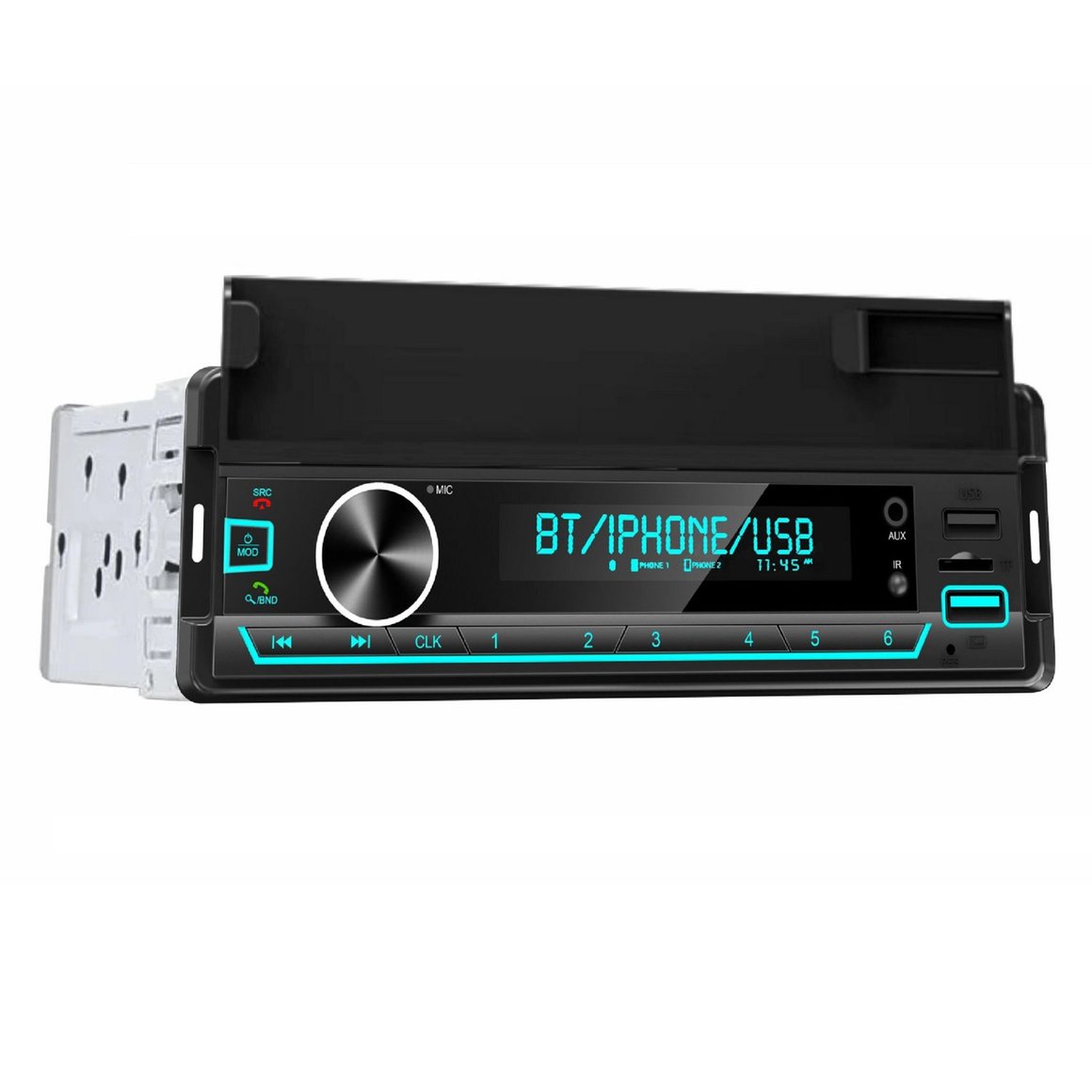 | Características | Radio de Auto 1 Din Soporte de Celular Integrao Bluetooth con A2DP Reproduce MP3/USB/MICRO SD Puerto USB de Carga Rapida 2.1 Amp Microfono Incorporado Sintonizador FM /18 Preset Entrada Auxiliar Iluminiacion 7 colores Control Audio: VOL/BAS/TR/BAL/FAD EQ:(POP/ROCK/CLASS/JAZZ/FLAT) Salida RCA (2 pares) Conesto ISO Incluye COntrol Remoto Potencia: 50Wx4" |