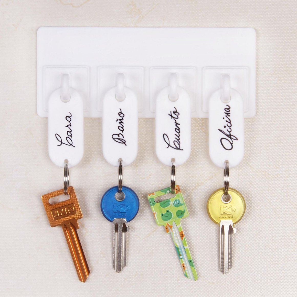 Este portallaves está hecho de PVC, un material resistente y duradero. Su diseño incluye 4 ganchos para colgar tus llaves y etiquetas para identificarlas. Puedes instalarlo en drywall, madera o PVC, gracias a su sistema autoadhesivo. El portallaves viene en un solo paquete, listo para que lo instales en tu hogar.