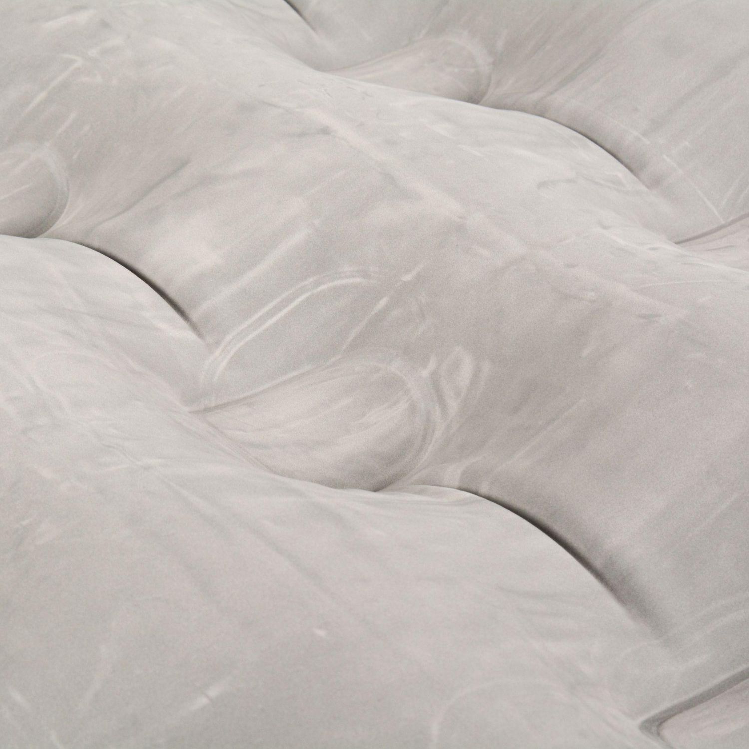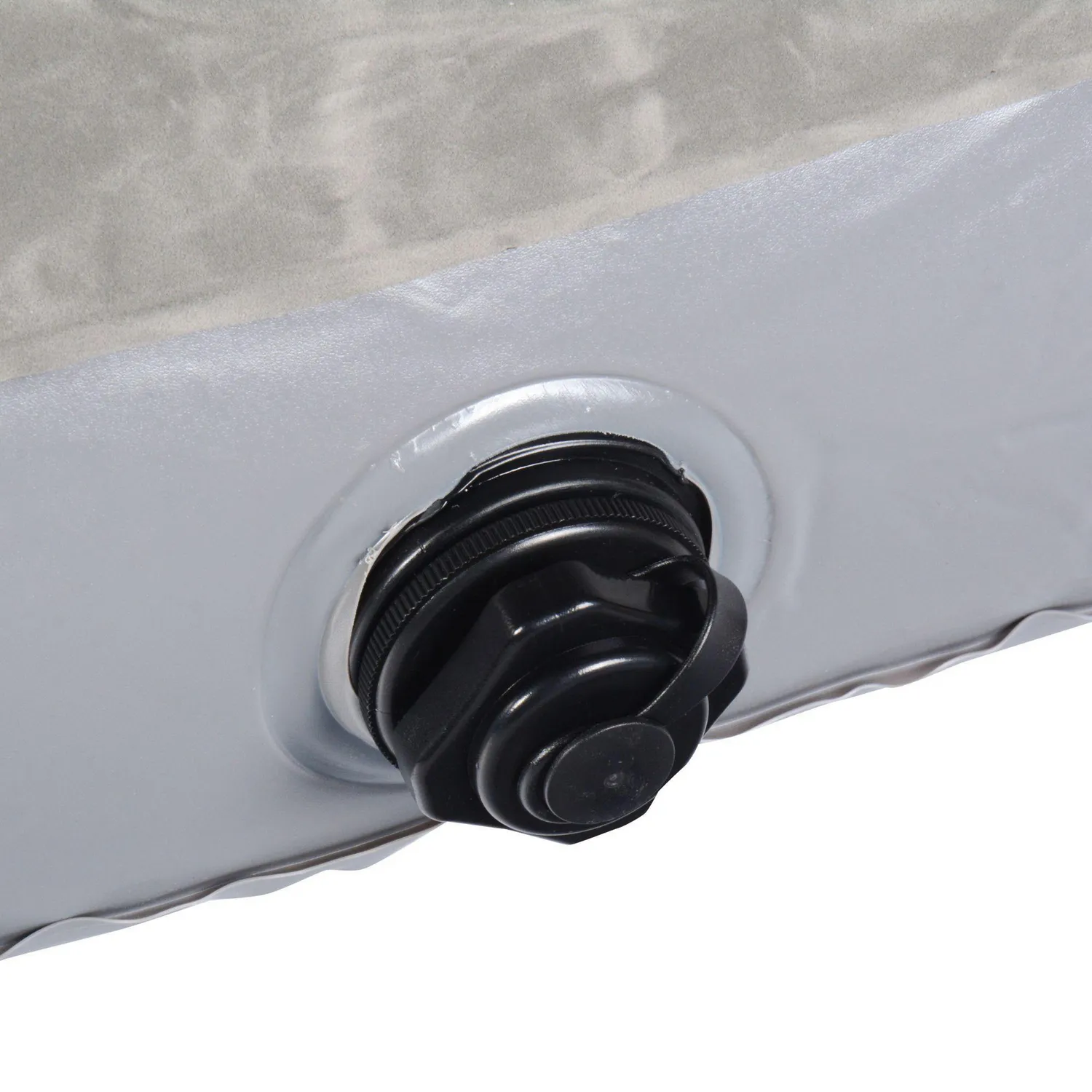 Este colchón, de color gris, mide 191 cm de largo, 137 cm de ancho y 22 cm de alto, ofreciendo un amplio espacio para descansar. Fabricado en PVC resistente y con una cubierta flocada, garantiza durabilidad y suavidad. Cuenta con un sistema de inflado manual y soporta hasta 272 kilos de peso, lo que lo hace ideal para diferentes usuarios.