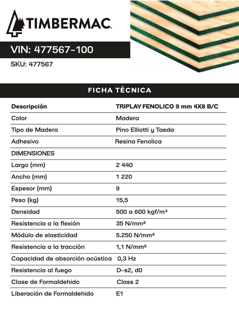 Tablero Triplay Fenólico B/C 9 mm 1.22 x 2.44 m