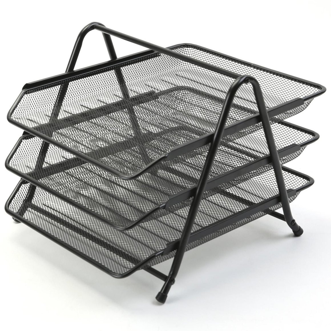 Este organizador de papeles, de la marca Just Home Collection, cuenta con 3 niveles para clasificar tus documentos. Está fabricado en metal resistente, soportando hasta 5 kg. Su color negro le da un toque moderno y profesional a tu escritorio.