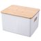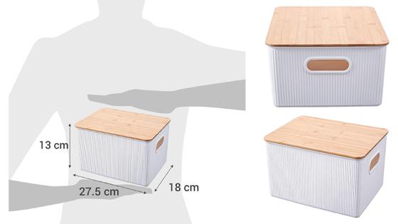 Canasta Plástica Tapa Bambú 6L Blanco