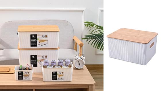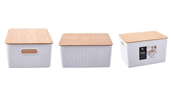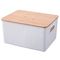 Canasta Plástica Tapa Bambú 23L Blanco