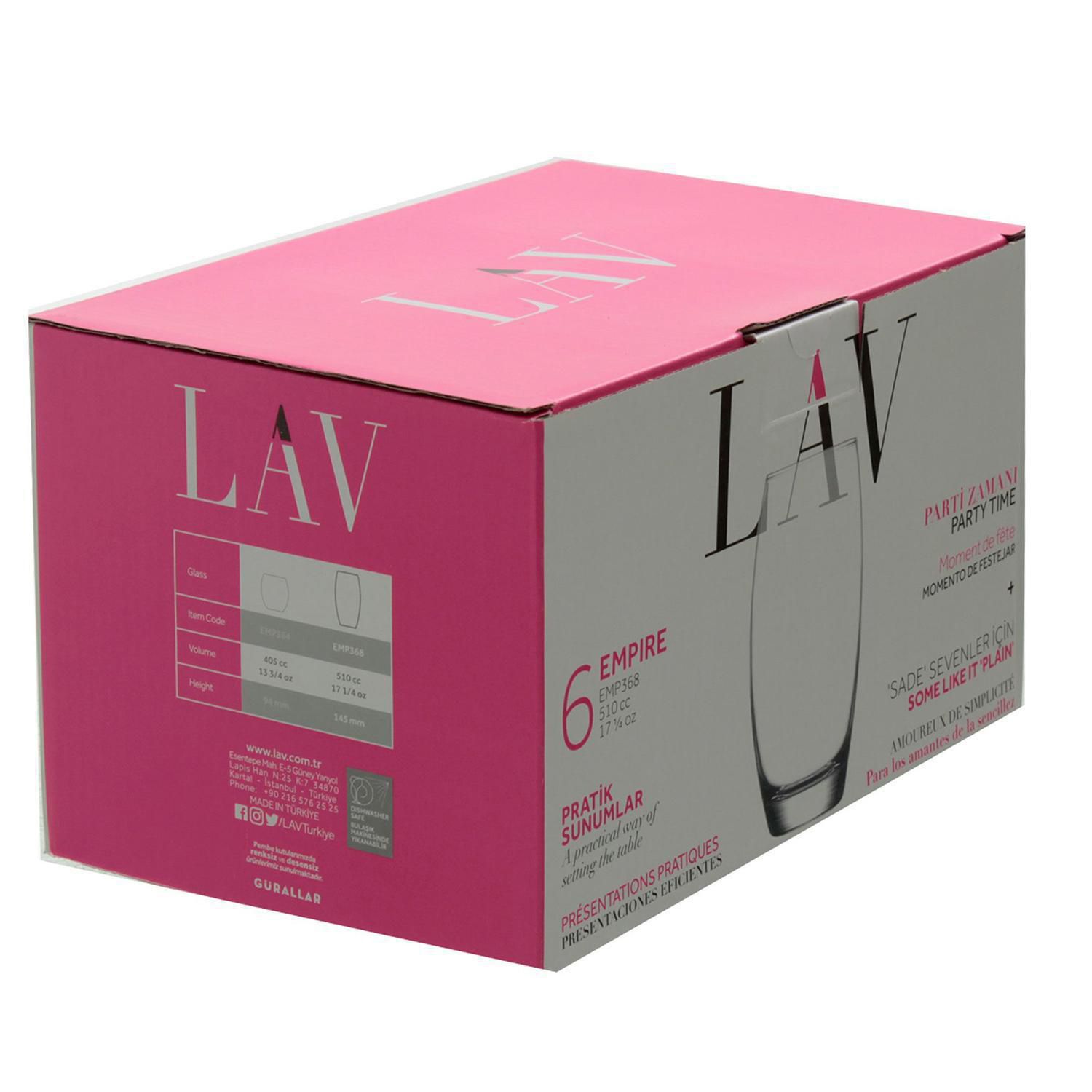 | Características | Set de 6 vasos de vidrio de 510 ml |