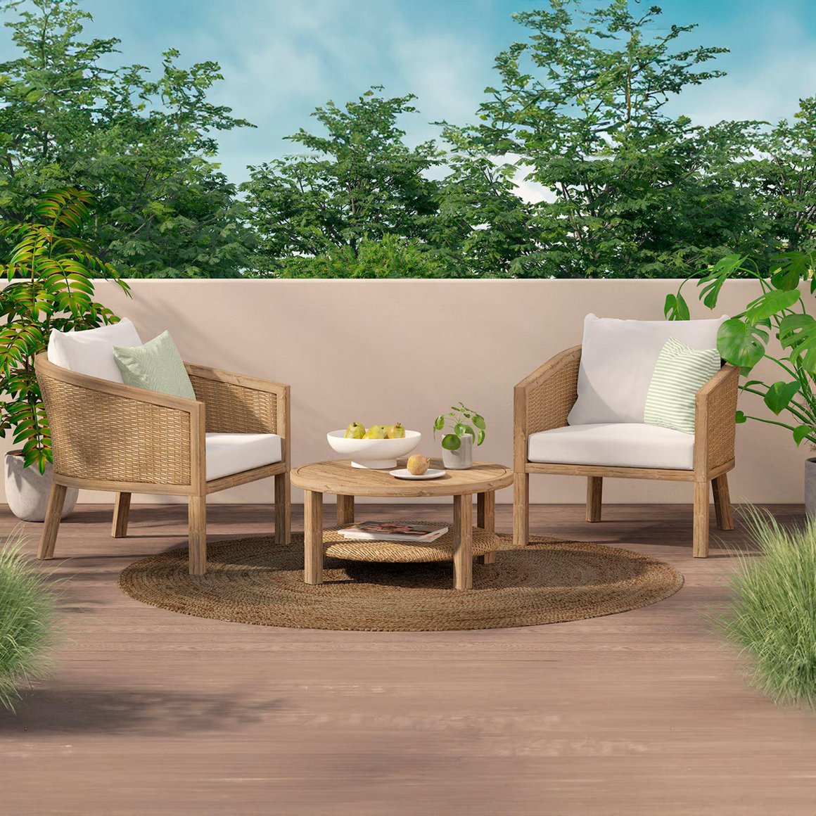 | Recomendaciones | Para mantener tus juegos de terraza en buen estado, límpialos regularmente con productos suaves y realiza mantenimiento según el material. |
